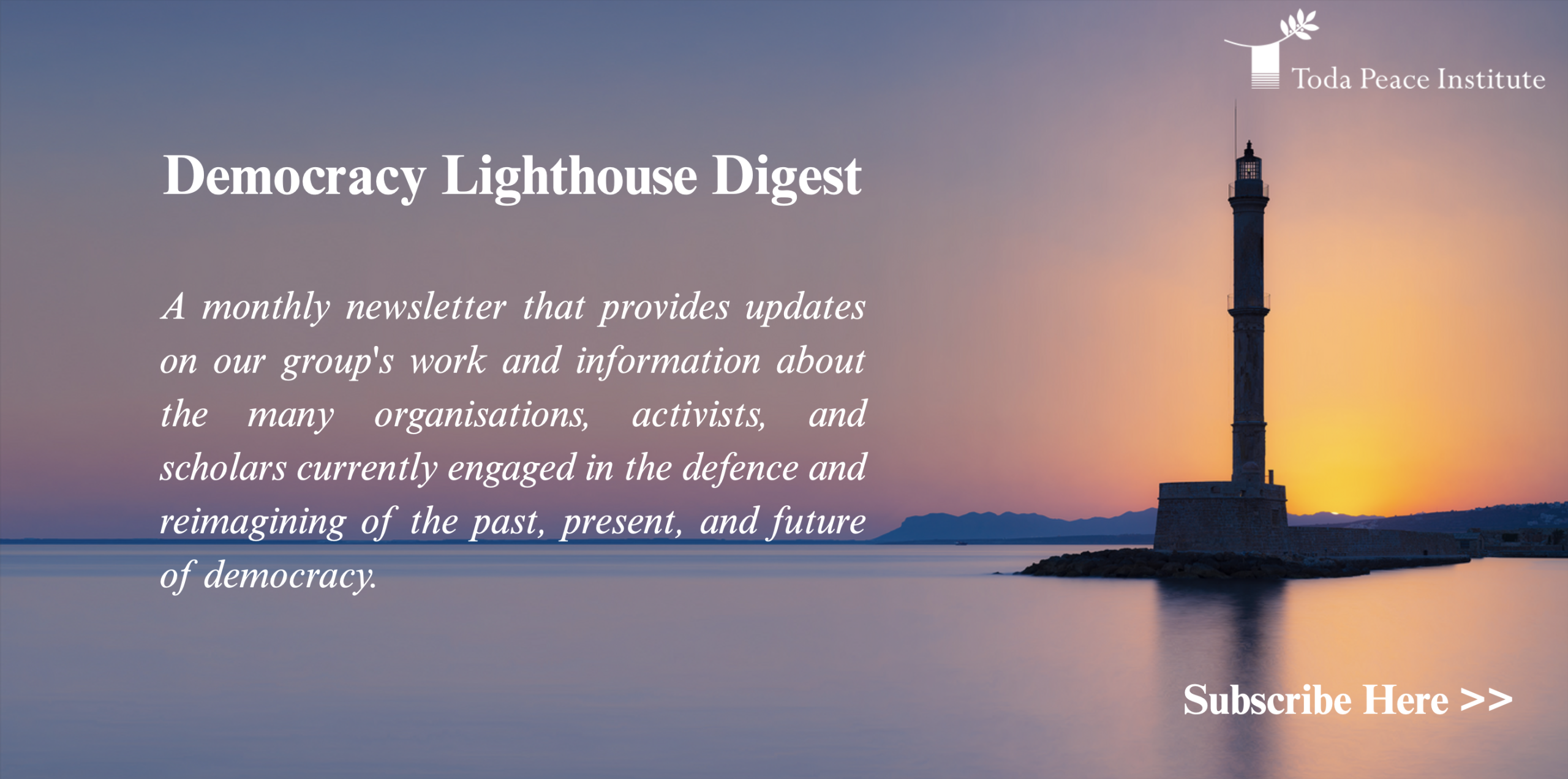 Funded and supported by the Toda Peace Institute, this lighthouse is an integral part of Toda’s Global Challenges to Democracy programme. The platform isn’t a political organisation or party-political grouping; it is an independent beacon and distributor of information on the global subversion and renewal of democracy. Democracy Lighthouse offers guidance to researchers, teachers, students, journalists, politicians, lawyers, public officials, NGO activists and citizens worried about the worldwide threats faced by democracy, many of them actively researching and inventing new ways of rejuvenating the spirit and substance of democracy.