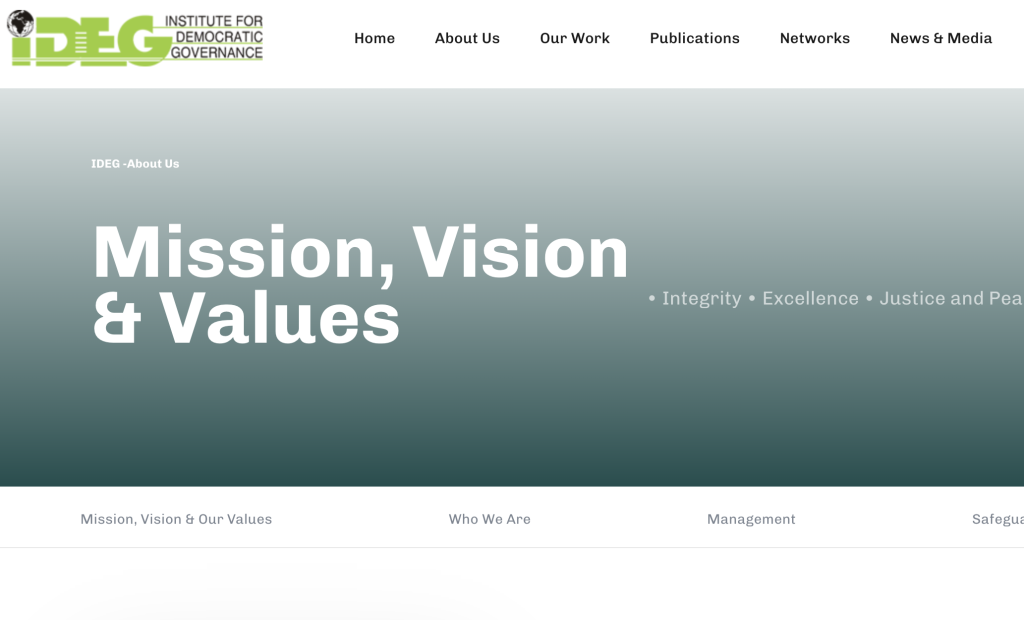 The Centre for Democratic Governance (CDG) is a pro-democracy advocacy, research, and organisational capacity development think tank that has been legally registered with the Government of Liberia since 2015. The vision of the CDG is a Liberia where policies and laws are responsive to the needs of citizens. In pursuit of this vision, the CDG has the following mission: to transform democratic and governance policies from a top-down approach to one that is reflective of citizens’ voices, views, and perspectives
