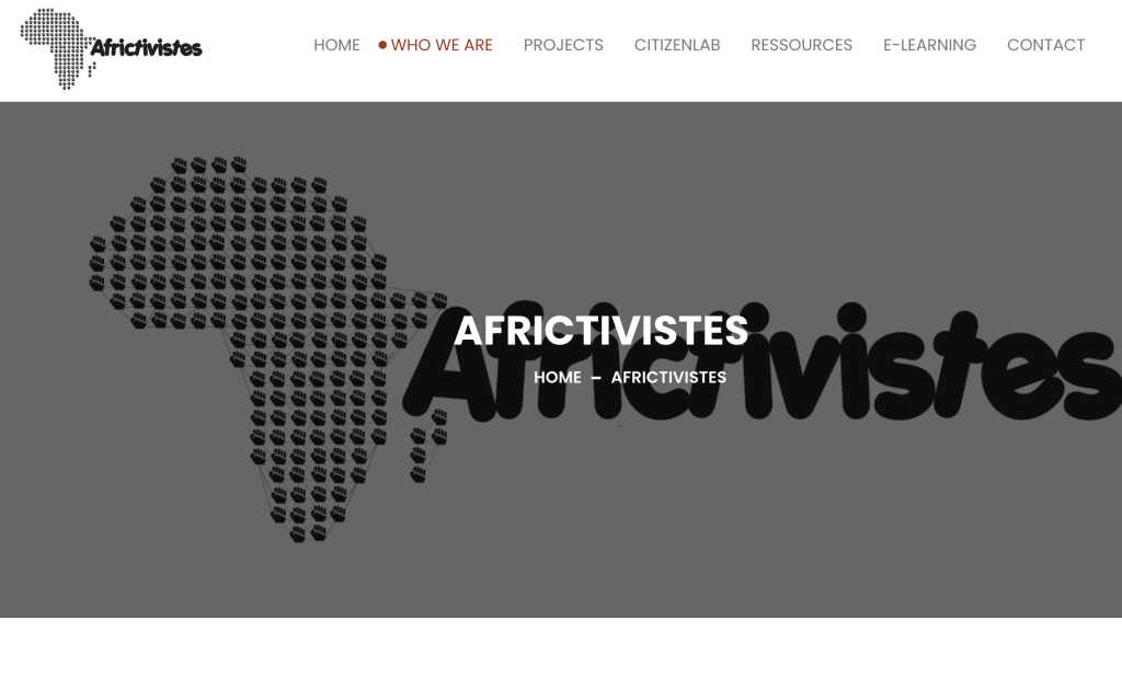 Africtivistes is the union of bloggers and web-activists of the continent to promote and defend democratic values, human rights and good governance through digital platforms. Africtivistes is a monitoring body for democracy in all African countries. As such, the league is committed to intervening directly or advocating for the involvement of actors in the various processes of political and social change. It conducts and pilots development projects and citizen involvement in democratic mechanisms. It also develops strategies to monitor political leaders in their actions and in the fulfilment of their promises in order to encourage transparency and good governance.