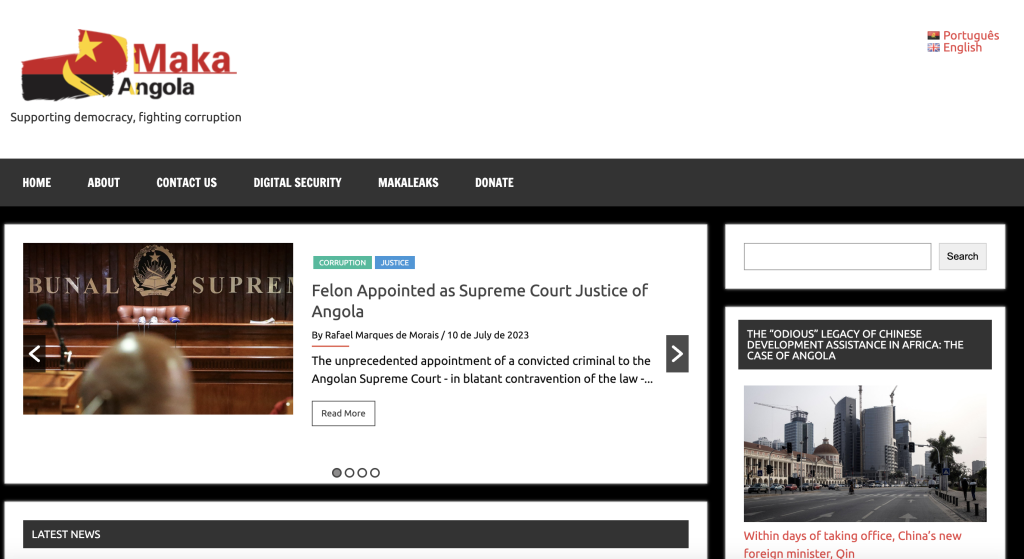 Maka Angola is an initiative dedicated to the struggle against corruption and to the defense of democracy in Angola, funded and directed by journalist Rafael Marques de Morais. Rafael Marques de Morais is an Angolan journalist and human rights defender focused on investigating government corruption and abuses in the diamond industry. Mr. Marques was imprisoned for his work in 1999, for calling President Dos Santos a dictator in an article titled The Lipstick of Dictatorship, and released after international advocacy efforts on his behalf.