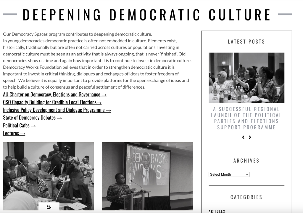 Democracy Works Foundation (DWF) is a southern African non-profit company focused on democracy development in the region. As an independent foundation, we build and promote inclusive, equitable and sustainable consensus democracies. We do so by providing tools, platforms and content to strengthen democrats, democratic culture and democracy institutions.