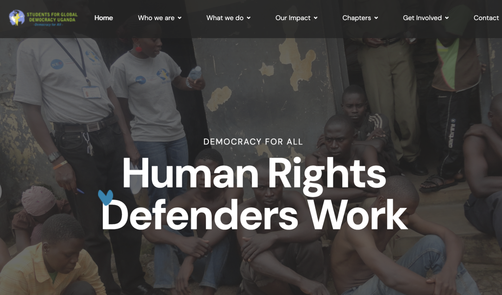 Students for Global Democracy Uganda is a student-led nonprofit and non-partisan organisation founded in 2005 that inspires young people, principally students, to adopt and promote principles of leadership, good governance and sustainability with the goal of greater youth participation in democratic processes and sustainable development efforts in Uganda and the outside world. Given the needs of the Ugandan youth and student population in particular and a recent trend towards more active citizen engagement on governance issues in Uganda, SGD Uganda has set out to empower students and youth to participate effectively in the democratization process.
